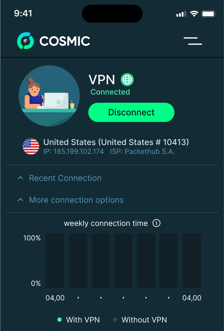 By prioritizing privacy and freedom while using the Internet, Cosmic's dVPN services allow you to access and enjoy your favorite websites from anywhere in the world.